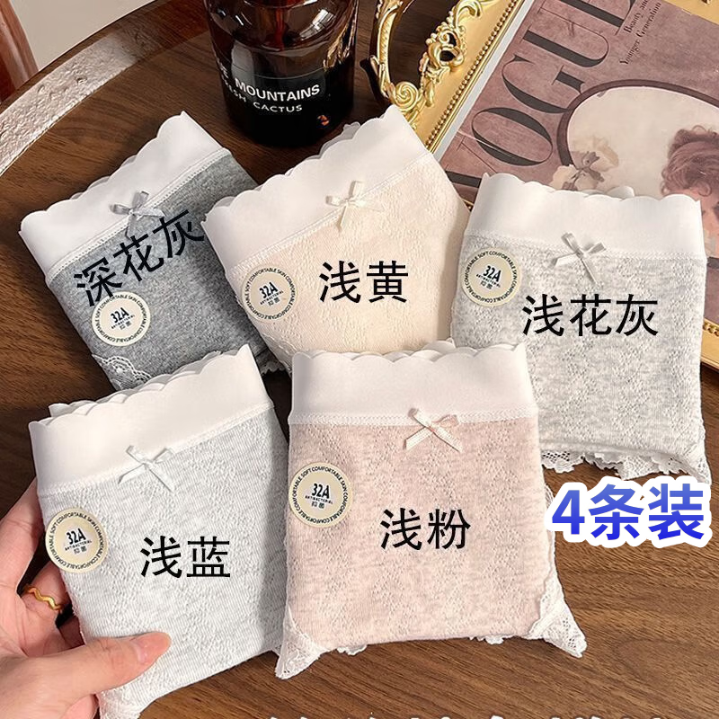 【劵后24包邮】稚蝶 女士纯棉法式镂空蕾丝中腰内裤 混色4条装