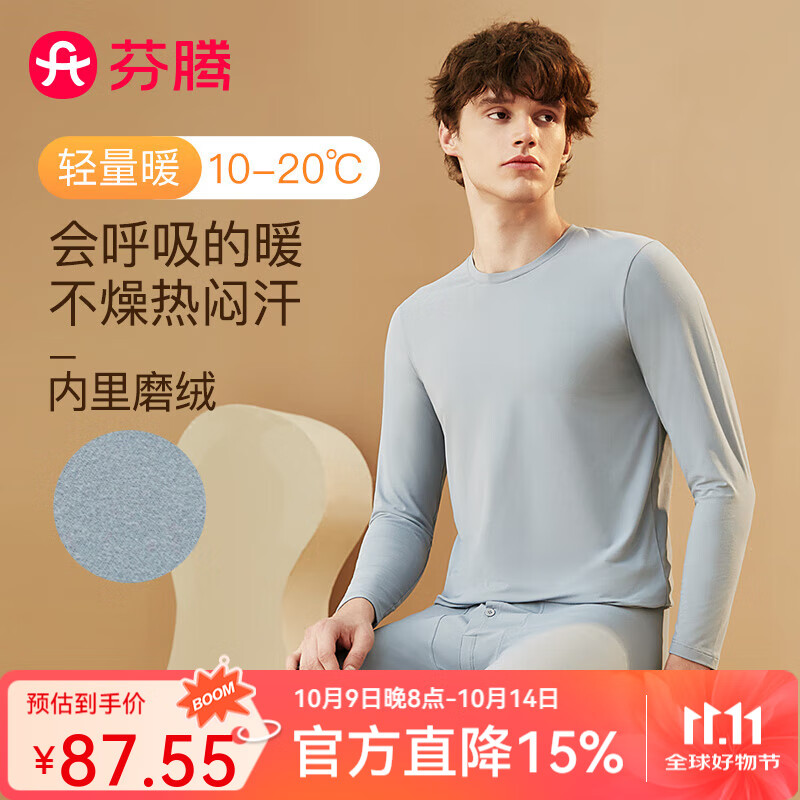 芬腾 保暖内衣套装女士修身圆领秋冬季长袖长裤打底 男款D-浅兰灰 2XL