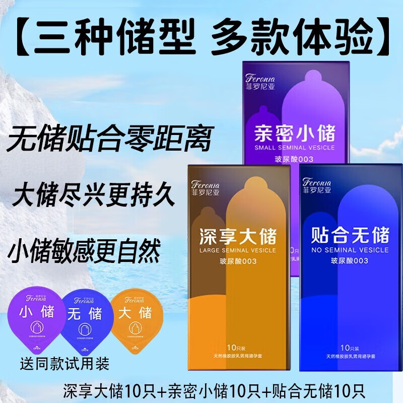 菲罗尼亚超薄裸感无储避孕套安全套女用口交套情趣用品女舔男口避孕套 【大储+无储+小储+试用装】33只装