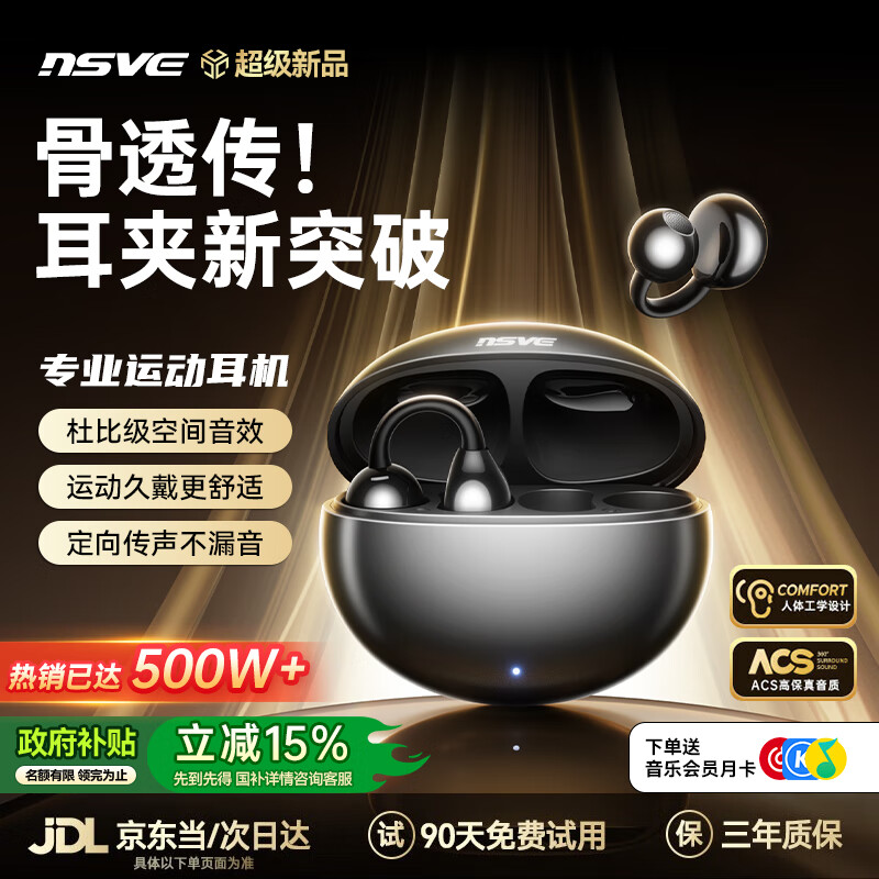nsve【2025最新款丨哈曼卡顿级】蓝牙耳机夹耳式骨传导概念开放无线不入耳运动降噪耳夹适用苹果华为S5 【Ultra艺术版】魅影灰 | 银河沉浸环绕音