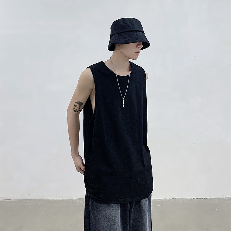 男士T恤夏季美式高街ins潮牌痞帅高级感无袖背心宽松休闲运动坎肩 黑色 XXL