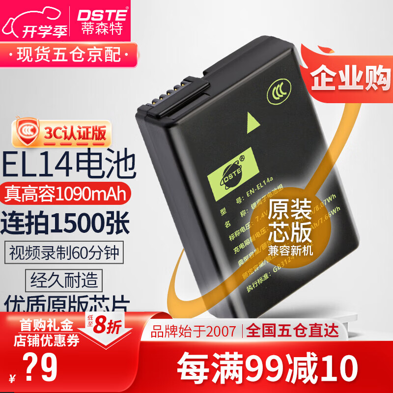 蒂森特3C认证 尼康D3500 D3400 D5600 P7800 D3100 D3200 D3300 D5100 D5300 D5500单反相机EN-EL14电池