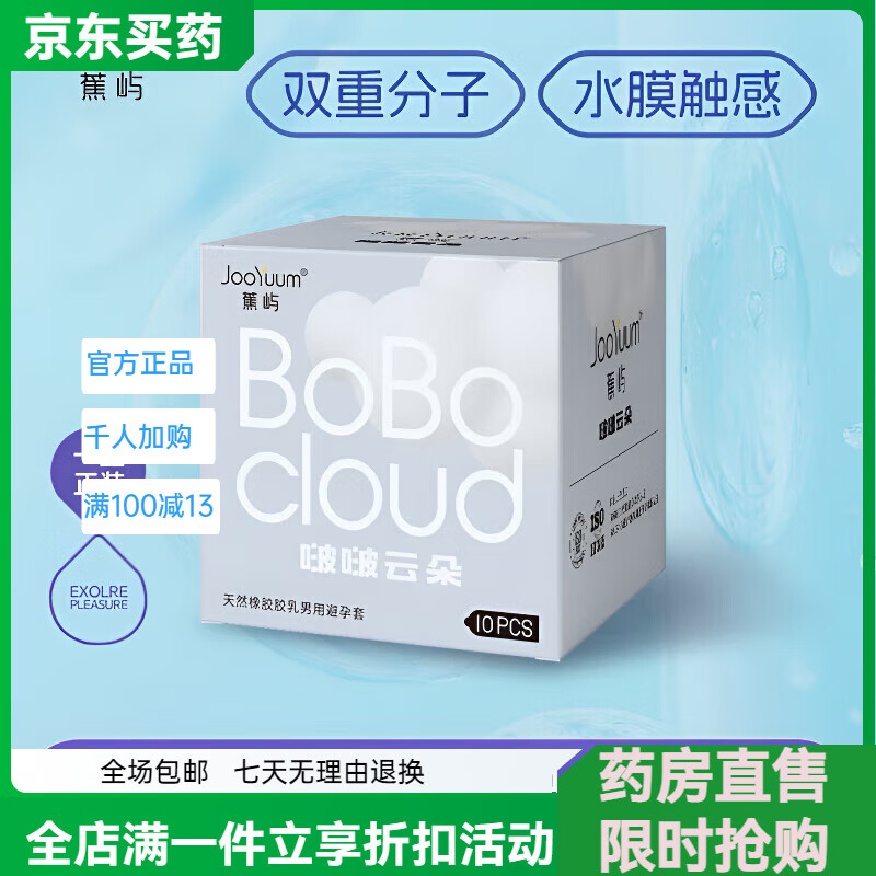 通用蕉屿001套裸感套啵啵云朵悠悠悦久玻尿酸超润防脱落男女安全 啵啵云朵001柔滑10只【一盒正装】
