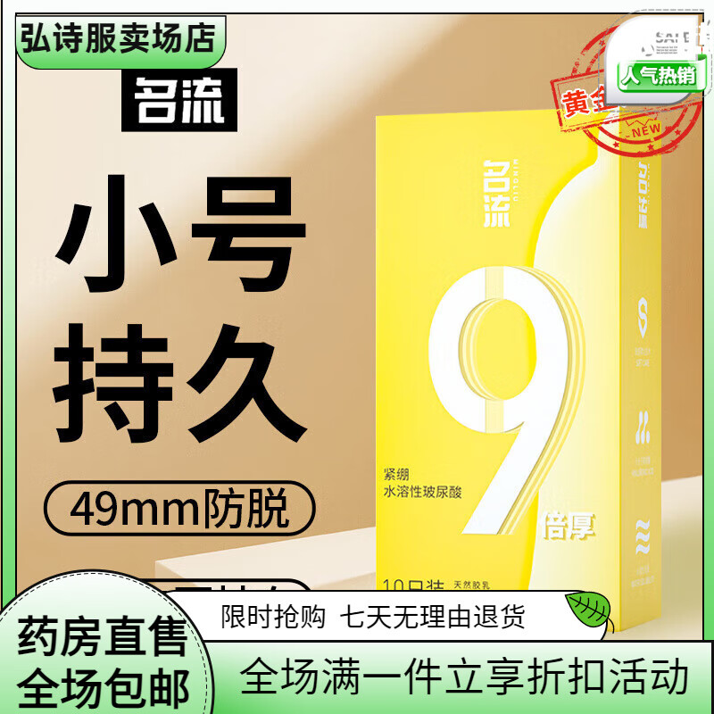 名流套持久 加厚小号49mm超厚增厚延时持久安全套紧致紧绷套套 久猛9倍加厚(小号49mm) 10只