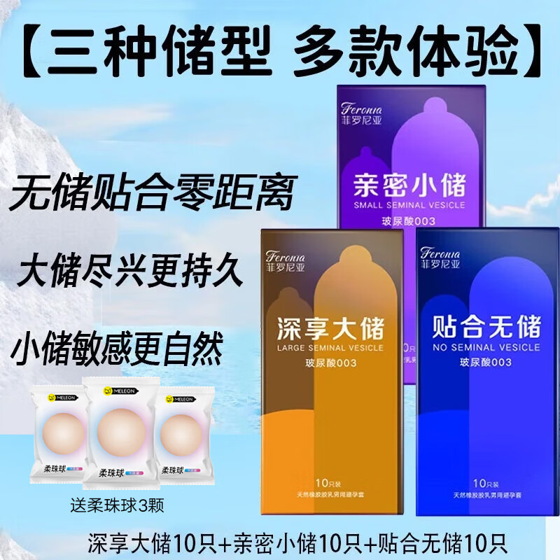 菲罗尼亚避孕套超薄裸感玻尿酸安全套套舌套 口交套成人用品情趣用品 大储+小储+无储共30只+赠送柔珠球