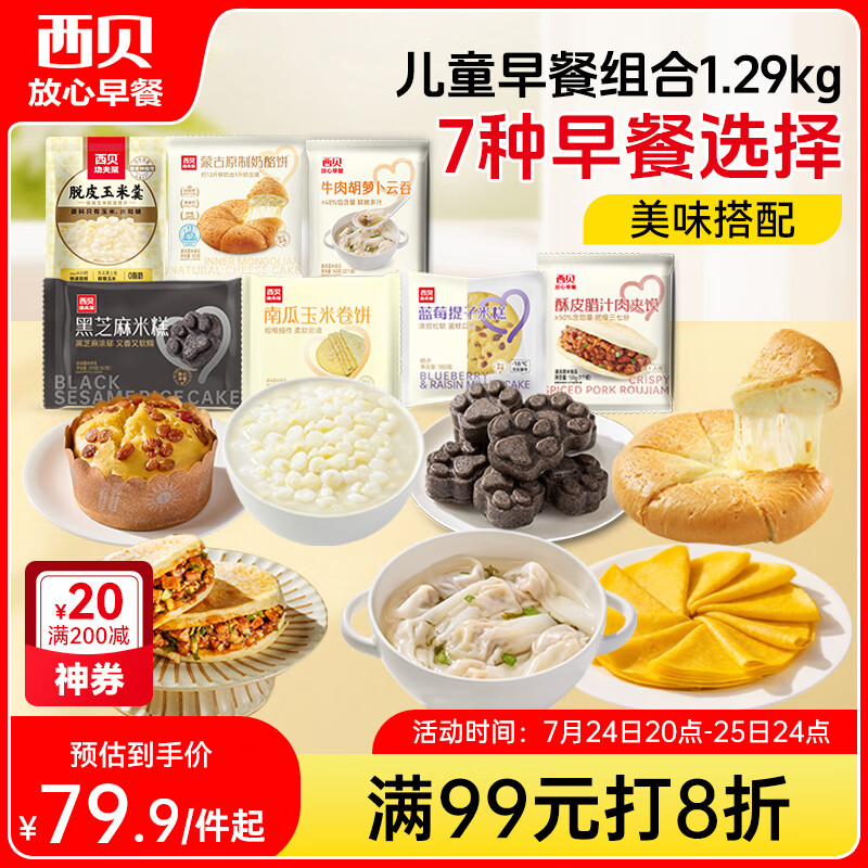 西贝莜面村早餐组合装约1.29kg共7件 早餐不重样 生鲜面点早餐速食 源头直发