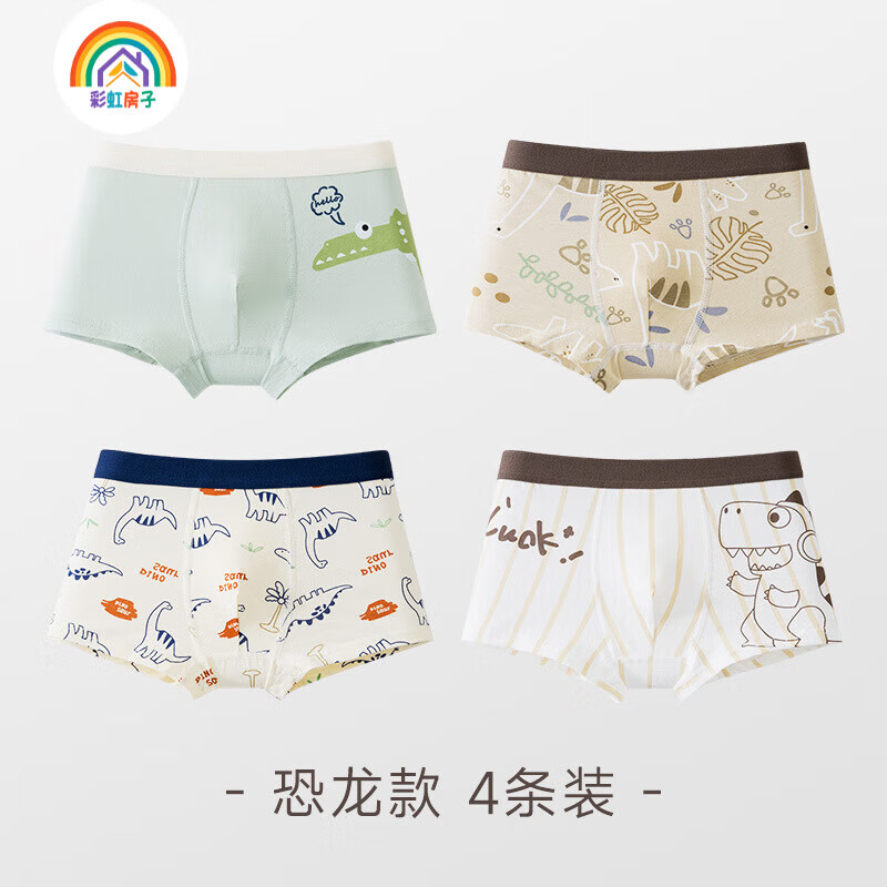 【旗舰店】彩虹房子 儿童A类纯棉抗菌内裤 恐龙公园 4条装