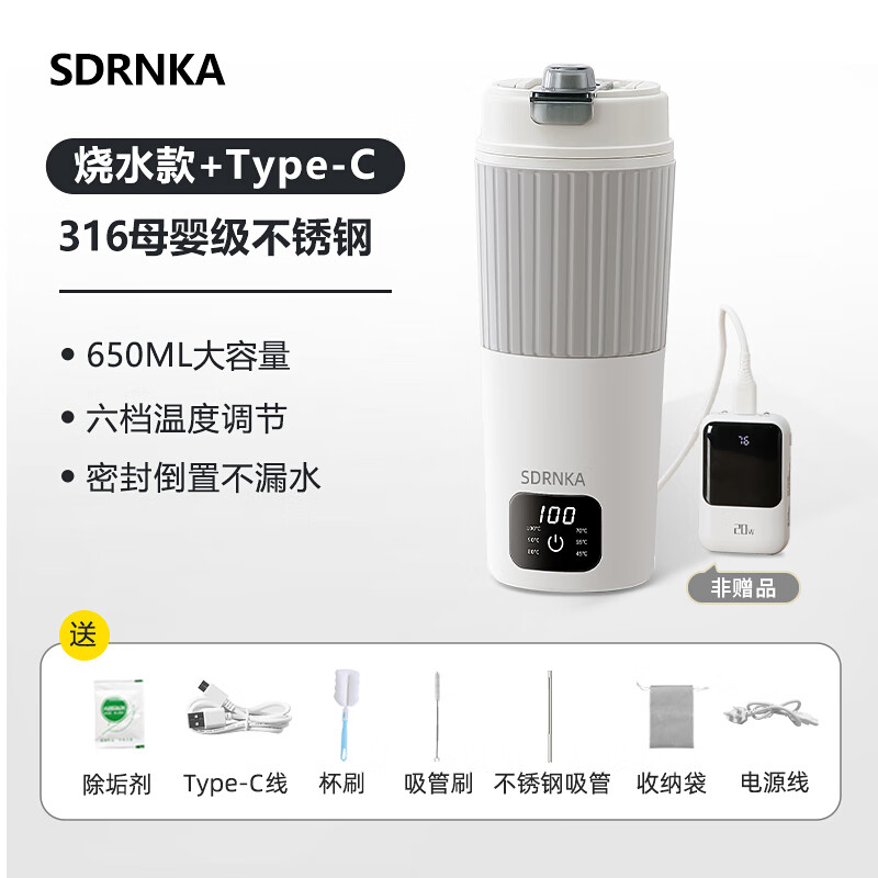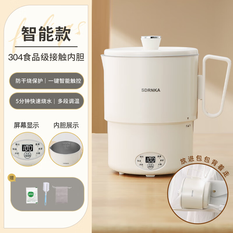 宝威玛(BVGMAV)英国99.9%纯钛茶隔养生壶4档烧水高硼硅玻璃硅胶防烫电炖电热水杯办公室迷你煮茶泡茶壶 0.4L 爵士白-99.9%纯钛茶隔