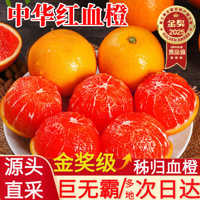 源惠鲜礼 湖北秭归中华红橙新鲜 中华红血橙 2斤试吃装【60-65mm】