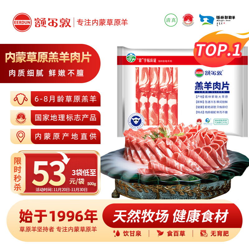 额尔敦内蒙古草原羊肉片生鲜羊肉1斤