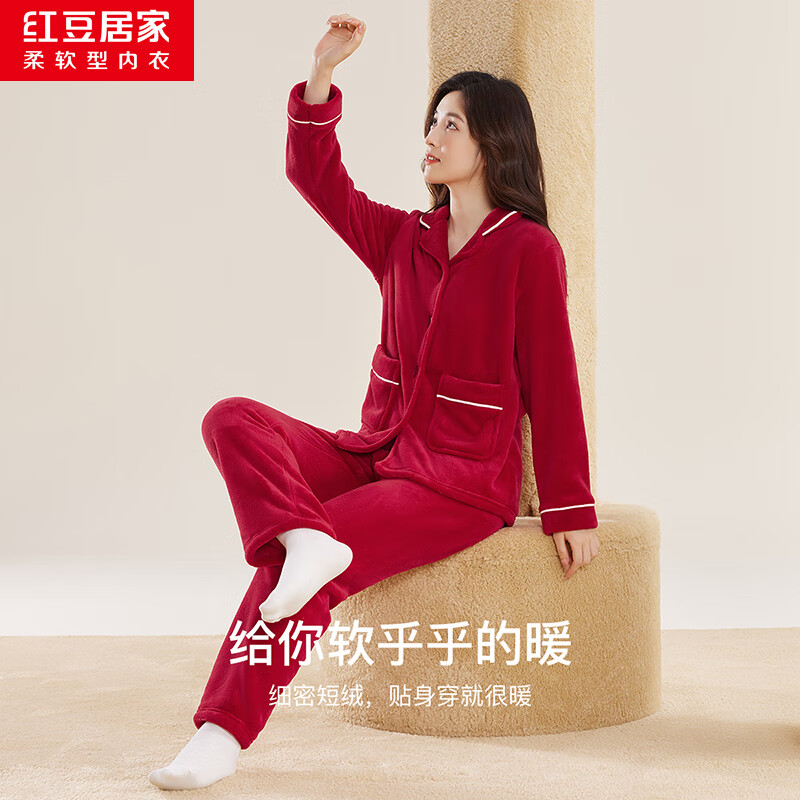 【到手59.8】红豆居家 法兰绒保暖家居服套装