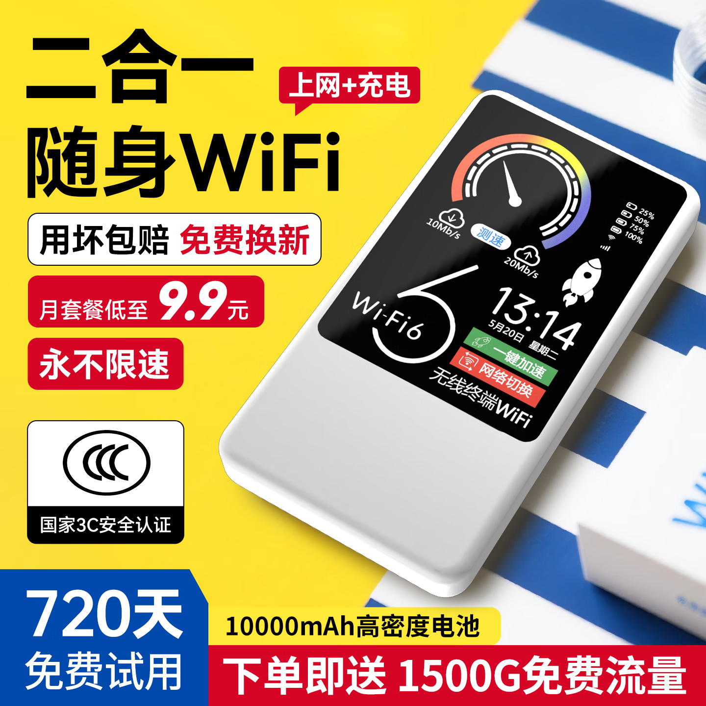 德芊2025款随身wifi三网通用1万毫安充电宝千兆无线wifi6免插卡无限制便携4G高速随行网络通用流量5GHF 1万毫安【帝王版】免费试用1年-赠送3000G流量