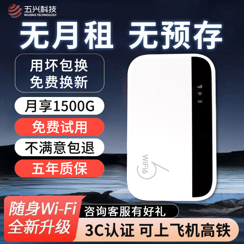 五兴无线随身wifi5G网络路由器三网通用wi-fi6免插卡移动联通电信无限制便携式高速随行网络通用流量 【三网任切】3000毫安电池 旗舰增强版