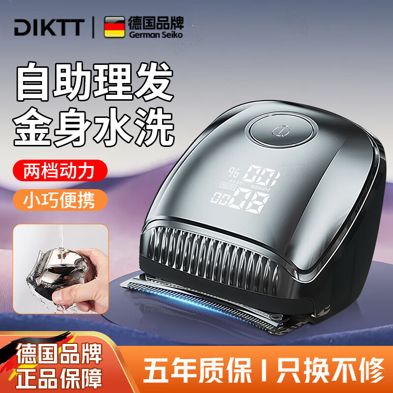 DIKTT【德国】理发器推子自理发剃寸头平头专用家用全家通用自己剪光头神器自助全身水洗专业理发无线 【电镀银】单机标配 强劲动力丨全身水洗