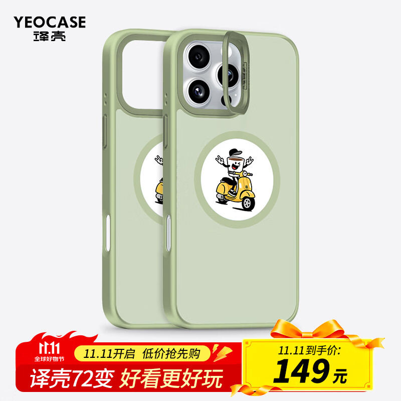 译壳Yeocase墨水屏手机壳 适用苹果15 16 17系列 防摔全包支架投屏磁吸手机壳 苹果17 pro max保护套 抹茶绿-支架款 iPhone 15promax