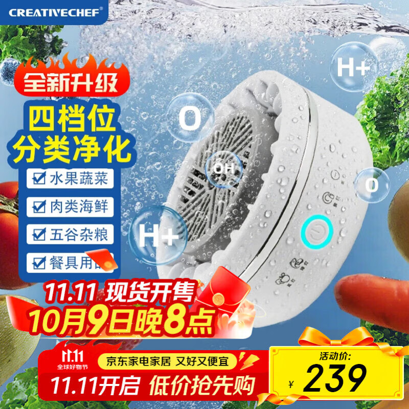 Creativechef旋转果蔬清洗机果蔬净化器家用洗菜机杀菌消毒神器食材净化机除农残食物自动多功能净化器神器 旋转【星悦白-新升级】4档7种食材模式