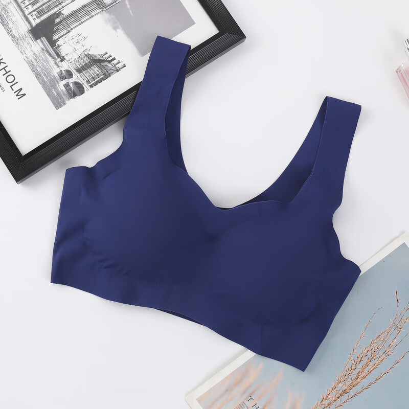 一片式无痕无钢圈聚拢大码美背心式运动文胸内衣女 蓝色 XXL