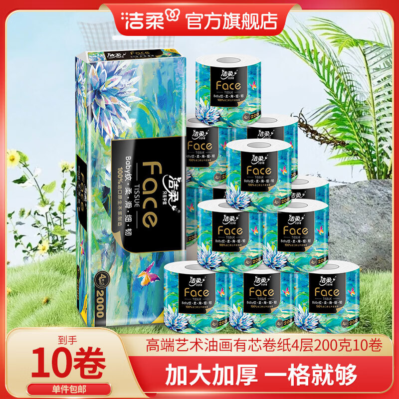 【补贴价26.9】洁柔 艺术油画卷筒纸 4层 200g*10卷