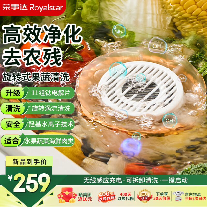 荣事达(Royalstar)果蔬清洗机洗水果神器洗菜机洗菜海鲜去农残神器多功能食材净化机RSQ-7TF1 【钛电解片+旋转清洗】